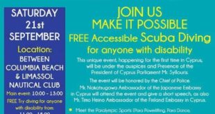 Στην εκδήλωση θα έχουν την ευκαιρία άτομα με αναπηρία να κάνουν μάθημα κατάδυσης δωρεάν